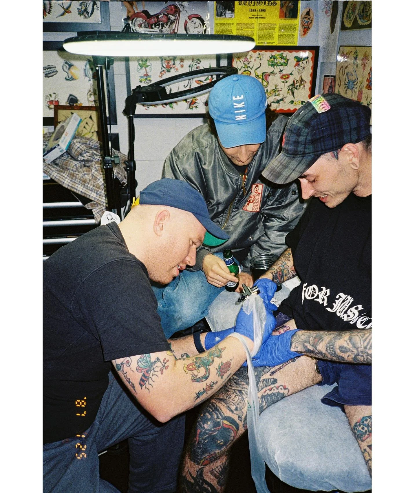 Grant specialises in black and colour traditional tattoos. He also enjoys other styles including custom lettering, heavier black/pattern work, and fine-line tattoos.